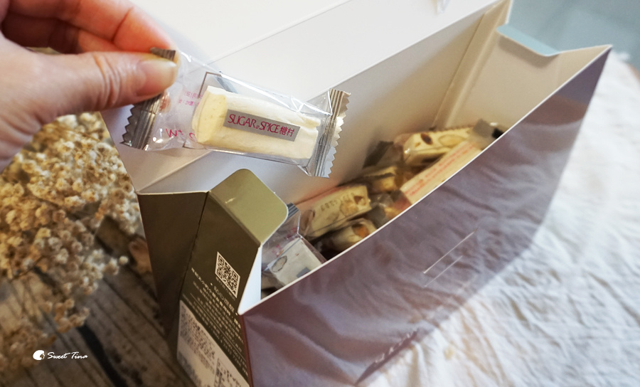 打開後即可拿取裡頭的牛軋糖,具巧思外還可以減少包裝的使用。