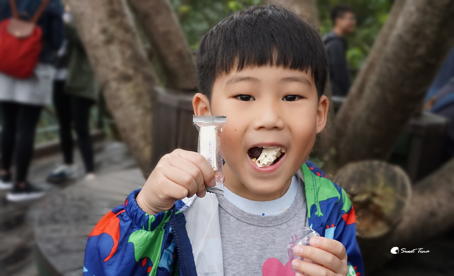 法式牛軋糖的軟硬度對六歲的瑋兒還滿剛好,瞧他吃得多開心啊,還沒吃完又貪心的再拿一個XD~