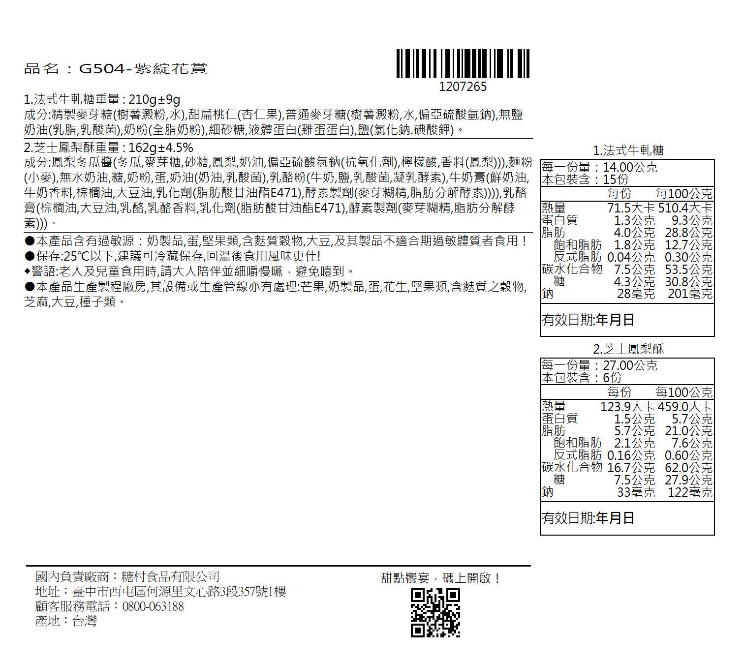 保存期限:牛軋糖65天內 / 鳳梨酥30天內