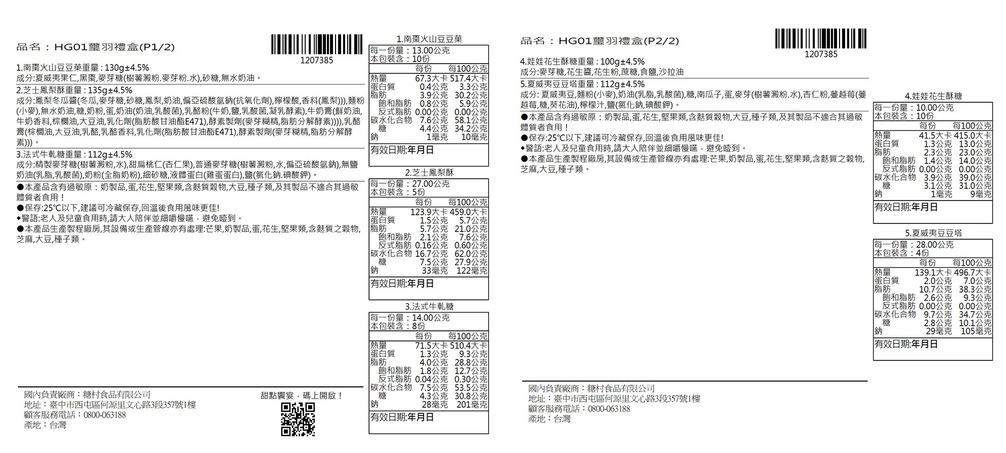 保存期限:南棗火山豆豆菓90天內 / 鳳梨酥30天內 / 牛軋糖65天內 / 花生酥90天內 / 豆塔25天內