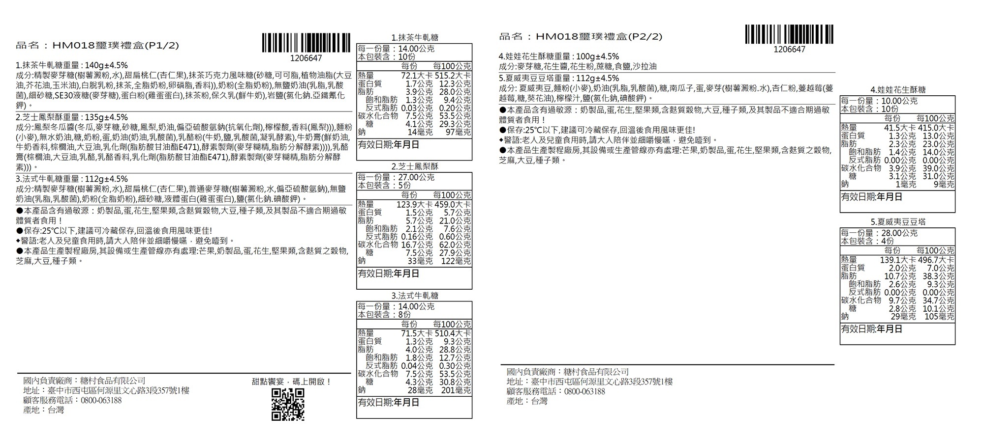 保存期限:牛軋糖65天內 / 鳳梨酥30天內 / 花生酥糖90天內 / 豆塔25天內