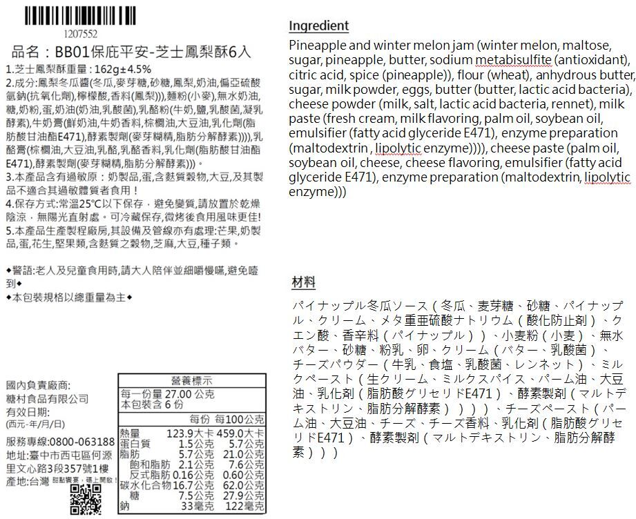The traditional taiwanese flavor (white gourd + pineapple jam) stuffing, giving an agreeable sweetness.The parmesan cheese-added crust brings a slight cheese smell to the pastry.