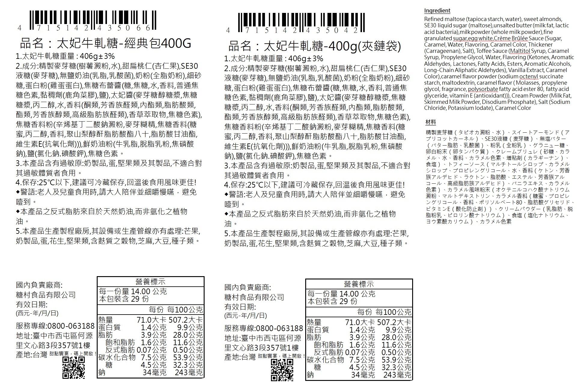 ★シュガービレッジヌガーは、硬化剤を添加しないことを主張しているため、製品は置かれた場所の温度に応じて製品の形状と硬度が変化し、低温では硬くて壊れやすくなります。これは正常です。物理的現象。お気軽にご食べください。