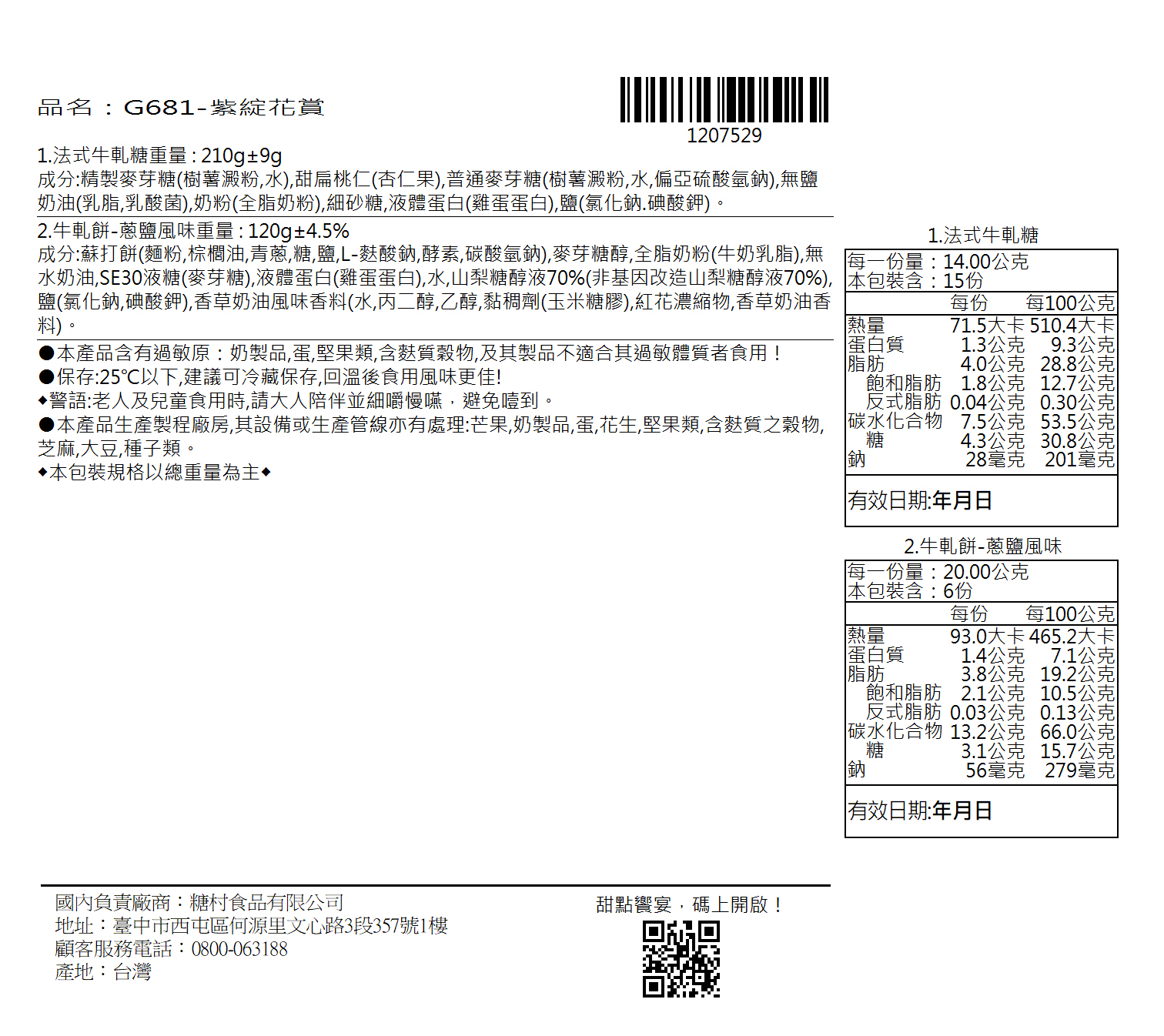 保存期限:牛軋糖65天內 / 牛軋餅35天內