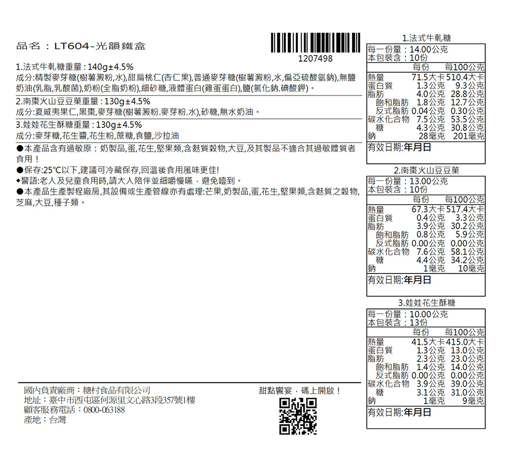 保存期限:牛軋糖65天內 / 南棗火山豆豆菓90天內 / 花生酥糖90天內