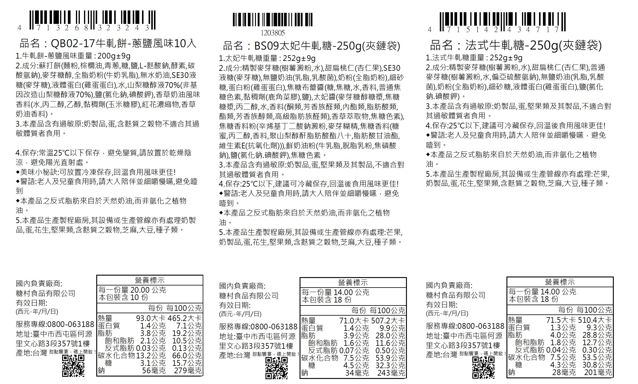 ★糖村牛軋糖堅持不加固化劑,因此產品會隨放置地點的溫度而改變產品外形及軟硬度;溫度低則會變硬易碎,這是正常物理現象,請放心食用。
