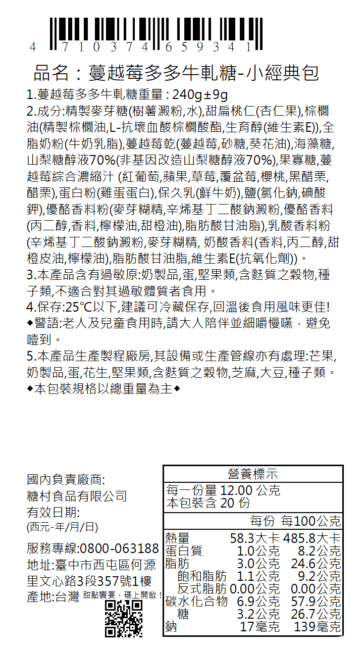 ❶蔓越莓多多牛軋糖240g