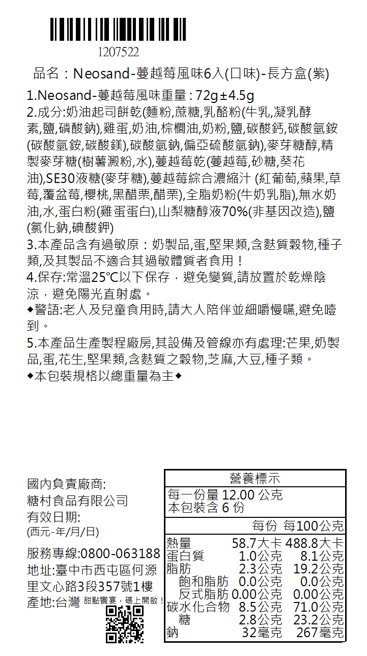 【買4贈1】Neosand-蔓越莓風味6入禮盒 - 糖村